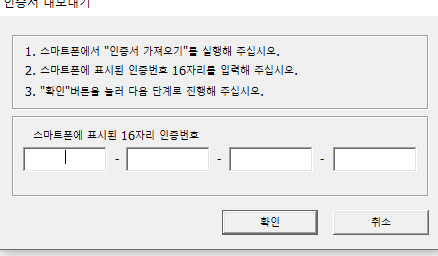 이제 인증서 받기 버튼을 눌려주시고 비밀번호를 입력해주시면 모두 완료 되었습니다. 그러면 이제 발급 완료된 인증서를 PC → 스마트폰으로 복사하는 방법에 대해 알아보겠습니다.