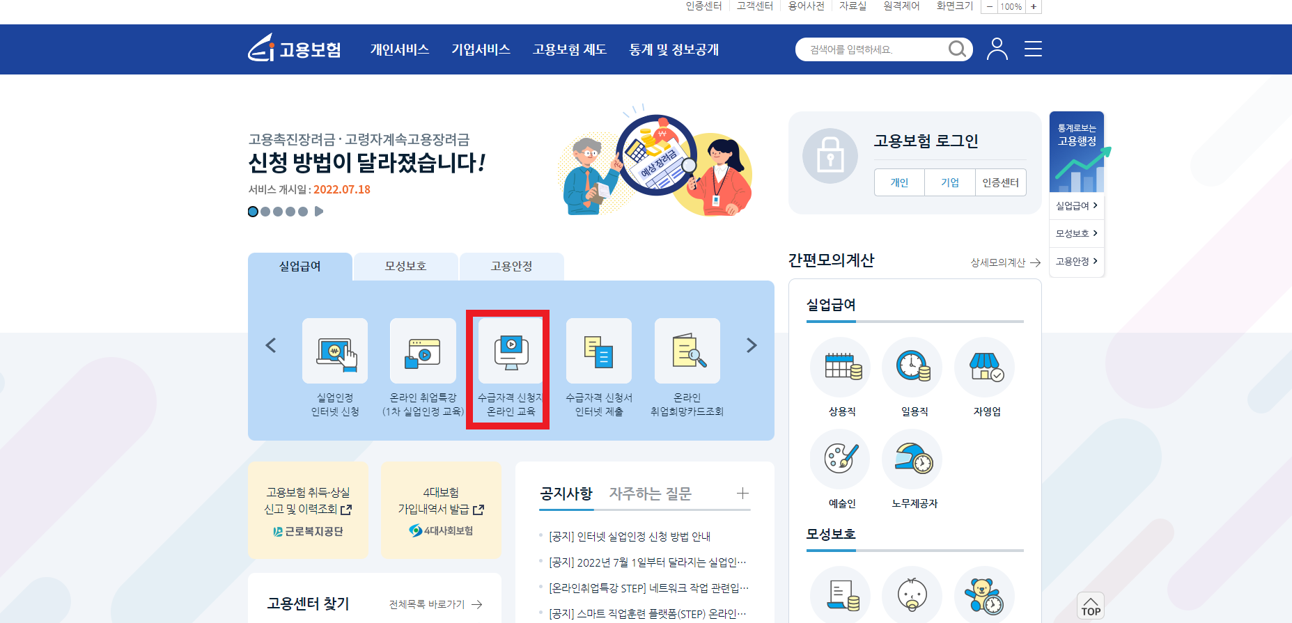 고용보험 모바일웹