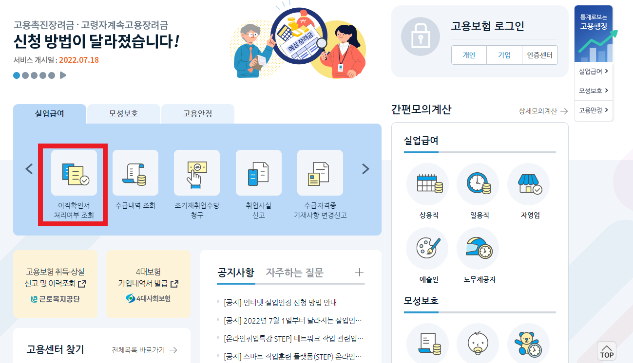 회사에서 이직확인서 접수를 하고 처리되기까지 일정 기간 소요되지만 처리가 되기 전 접수만 되어도 신청이 가능할 수도 있으니 관할 고용센터에 문의해보시기 바랍니다.