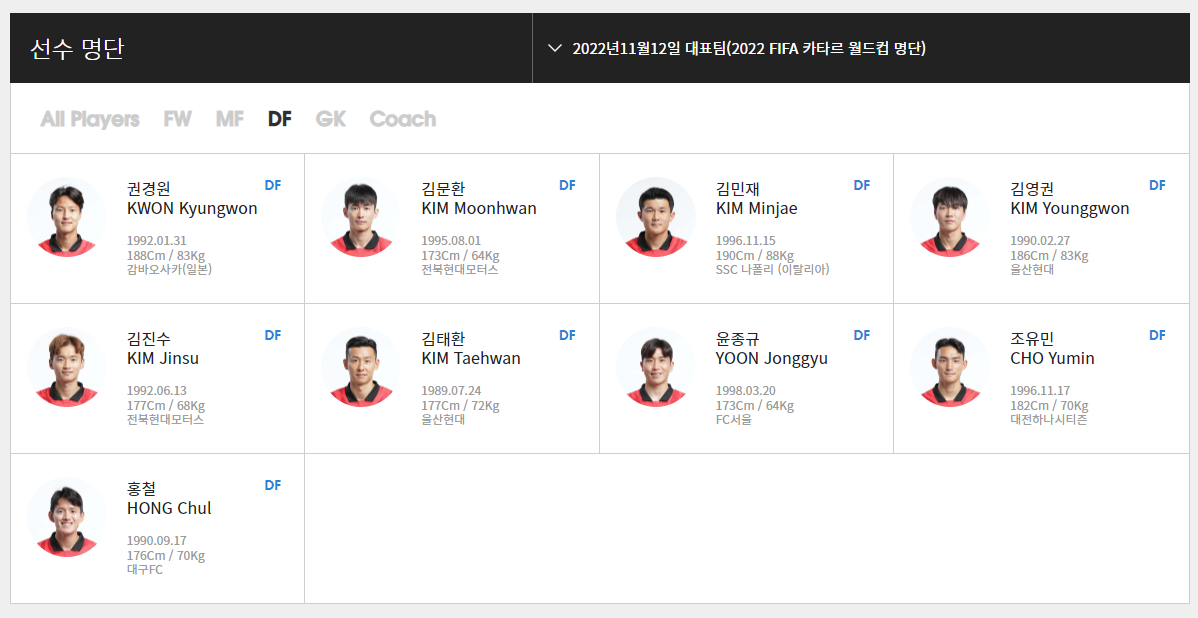 우리나라 축구 국가대표팀 명단